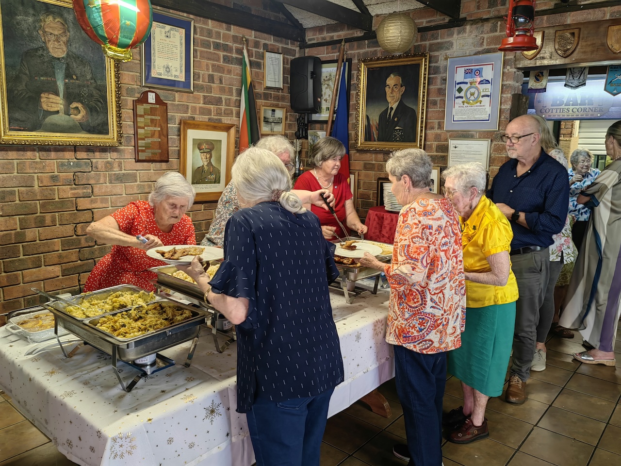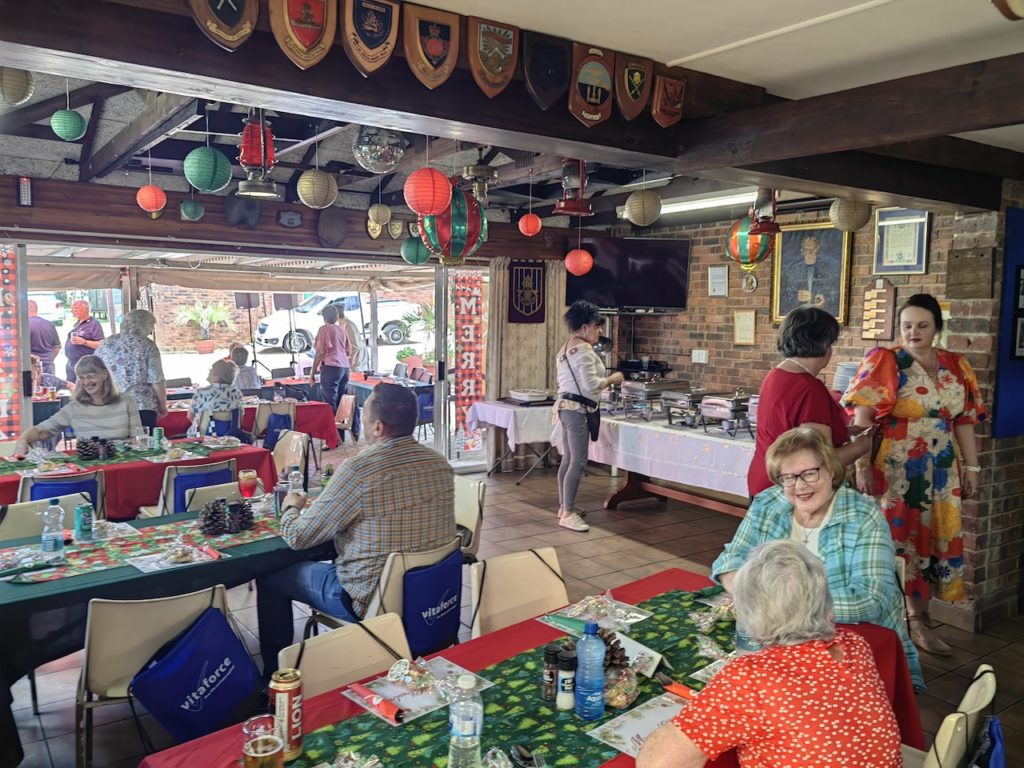Once again the Management committee arranged a lunch for the residents of Moth Cottesloe Homes. A very big thank you from the management committee to Mary Anne and her little elves who sorted decorated, arranged sponsorship, cooked the vegetables and generally made sure the day was a great success. All a big thank you to all the residents who had a part to play on the day. The meat for the day was a spit braai with 14 kgs of Beef and 14 kgs of Pork which was brilliant.