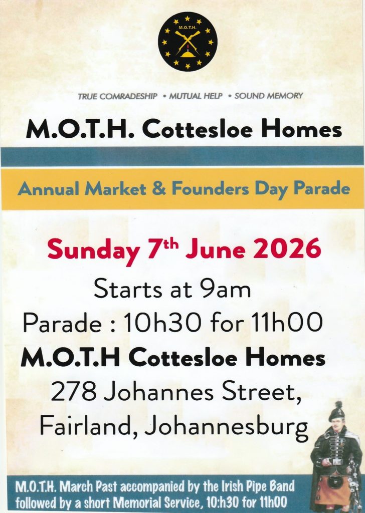 Moth Cottesloe annual Fete and Jannie Smuts Parade takes palace at the cottages.Looking for a Stall – contact Lenard Wynne lenardw1234@gmail.com or 0822986976 Fete starts at 9h00Parade : 11h00 – 11h30All Military Veteran Associations are Welcome and may carry their Standards.Only one Wreath will be laid.