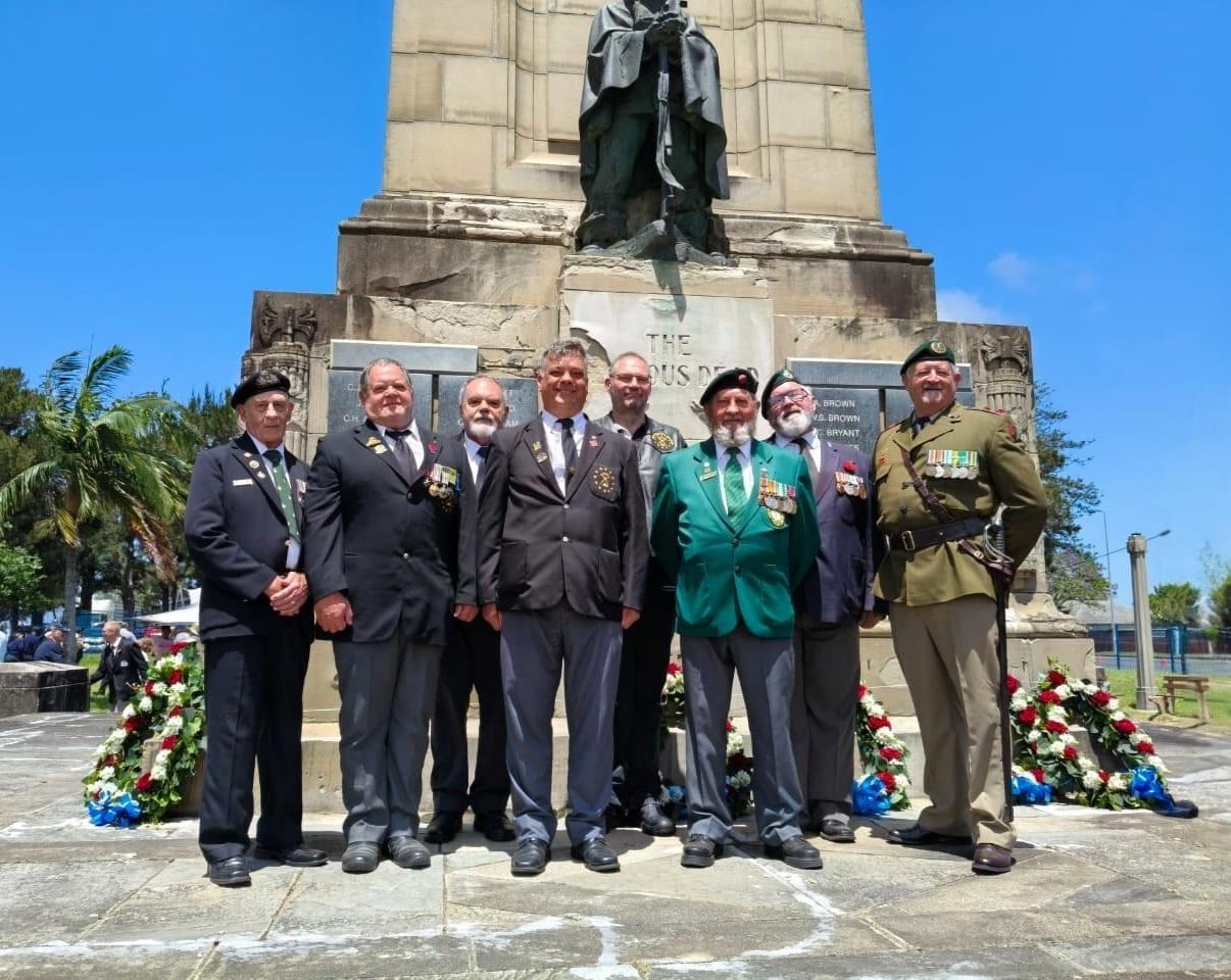 East London District fell in for the Remembrance Service on Sunday 10 November 2019. The welcome and much-needed rain did not stop the blokes in the performance of their duty, although all were soon, in the Scots saying,”fair drookit”