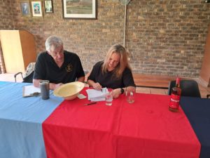 In the spirit of the combined meeting, the blokes were heavily fined for a whole range of actual and trumped-up transgressions. Old Bill Pierre de la Harpe from Ouma also raffled a bottle of wine signed by General Constand Viljoen. Moth Thinus Prinsloo – an ardent collector from Vacant Chair, who does even partake of the good stuff, won this sought-after prize. What a swindle! On the day, the combined meeting raised just over R 1,700 for the Pretoria Cottages. Well done, blokes!