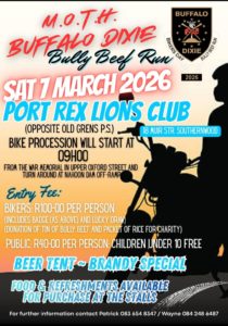 Buffalo-Dixie successfully hosted its annual Bikers’ Day on Saturday 7 March 2026 at the Port Rex Lions’ Club; a venue noted for its spacious and attractive setting.