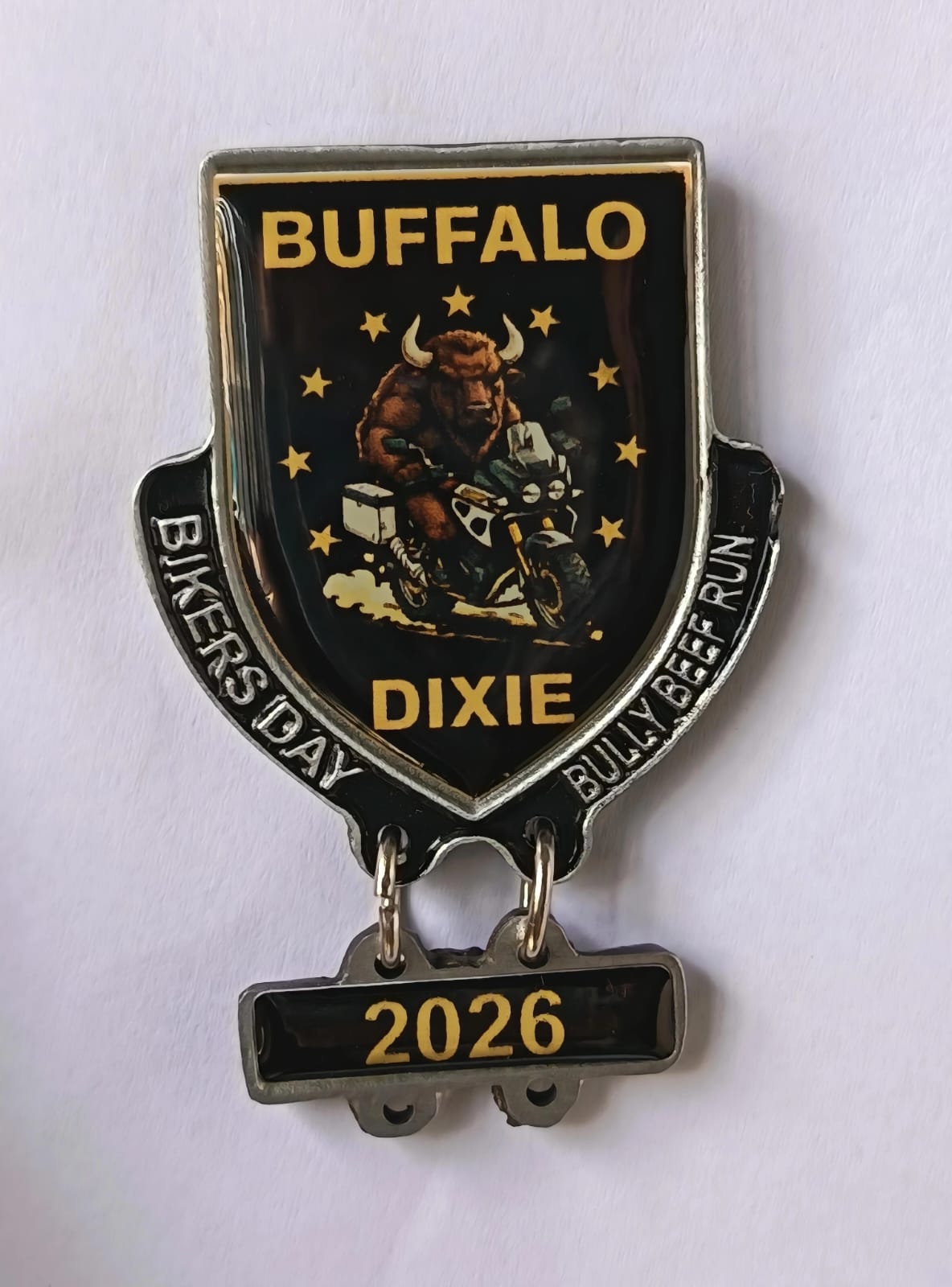 All attendees paid an entrance fee, while participating bikers contributed an additional amount and received a commemorative biker’s badge. This year a new badge concept was introduced, designed by Old Bill Patrick Stephenson, allowing for the attachment of annual year tabs. This innovation is expected to reduce future badge costs, as only the year tab will be purchased after the initial badge.