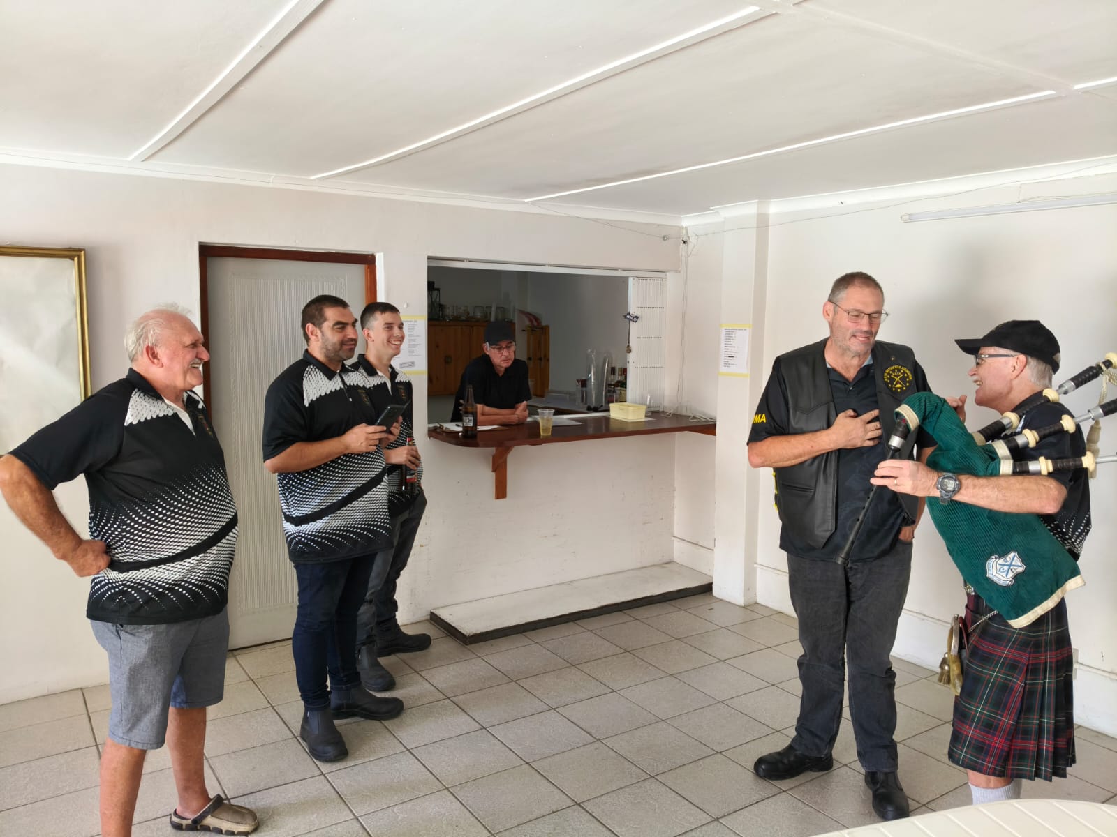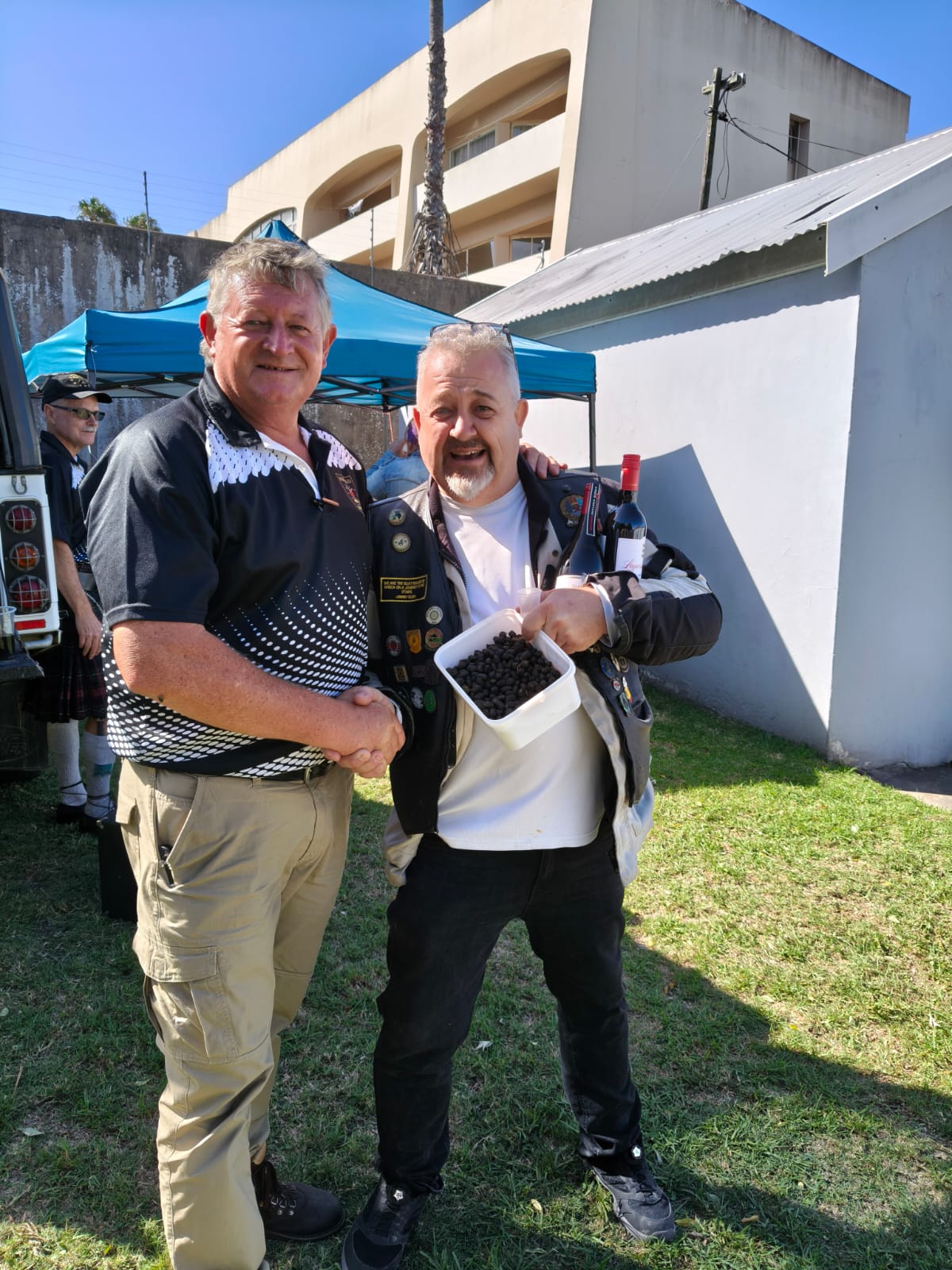 The programme included numerous lucky draw prizes, a bagpipe rendition by MOTH Dave Rankin and a range of entertaining games. One of the highlights involved participants consuming a Witblitz shooter before attempting to launch a bokdrol as far as possible. Be careful which one you swallow! The winner of the competition was MOTH Eugene Knoetze of Buffalo-Dixie Shellhole. The day concluded with various fun activities enjoyed by all in attendance.