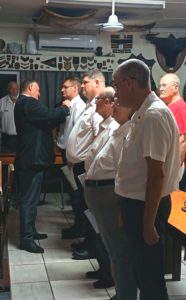 OB Patrick Stephenson officiated at the induction of MOTHs Adrian Wittstock, Riaan Henning, Terence Schafli and Shellhole Supporters Michelle Schafli and Grant Emmett.