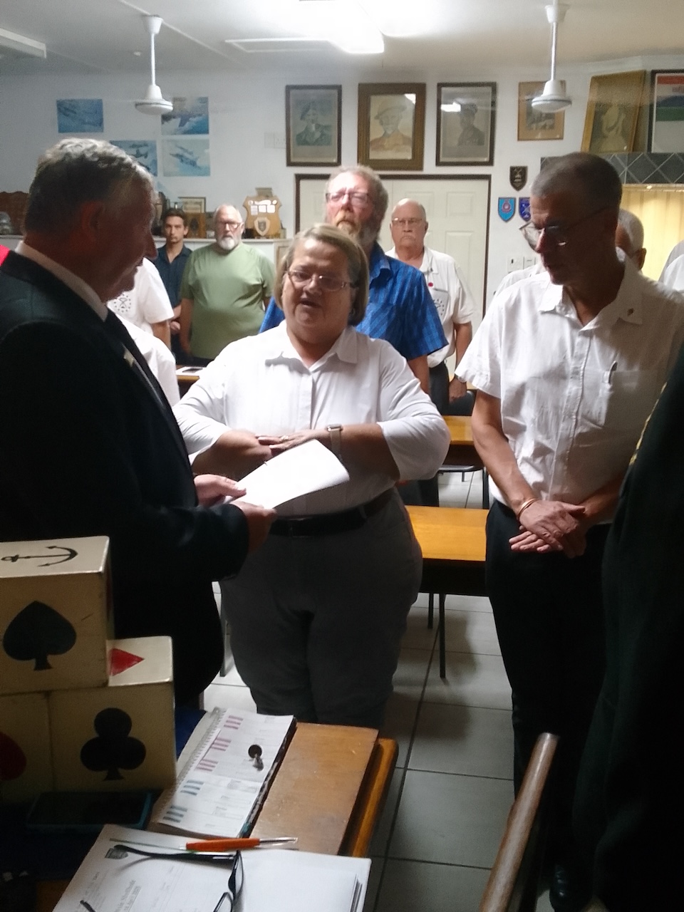 Buffalo-Dixie Shellhole held its AGM on Tuesday 12 August 2016. In the Old Bill’s report it was noted that the Shellhole has been active and is steadily growing with recruits in the wings. The incoming executive were inducted by East London District Old Bill, Ken Scott.